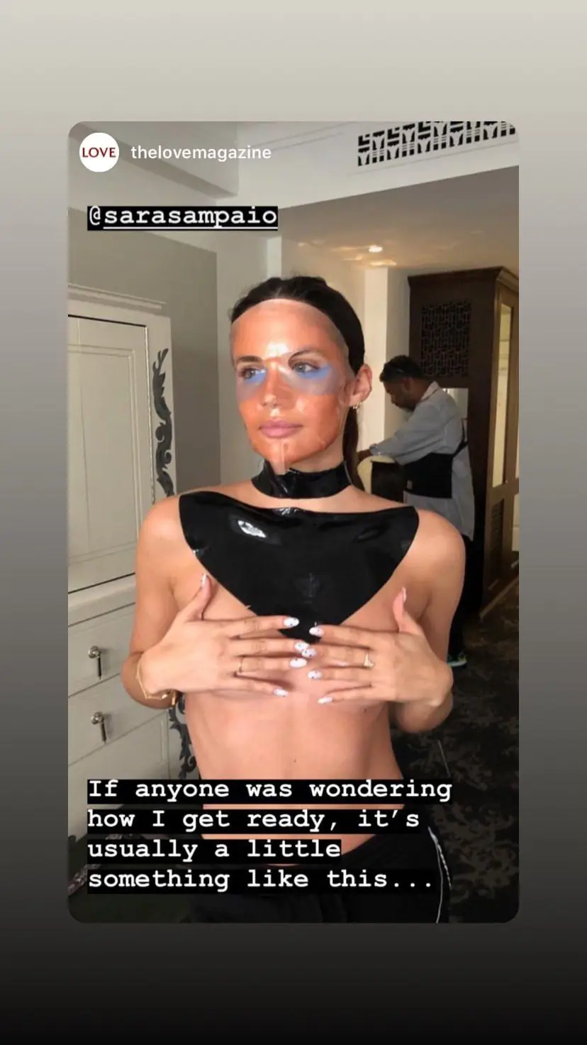 No vídeo acima, a modelo mostra o vestido ao pormenor e desvenda como foi feito o seu penteado. Abaixo, espreite a máscara facial que Sara Sampaio fez horas antes do evento.